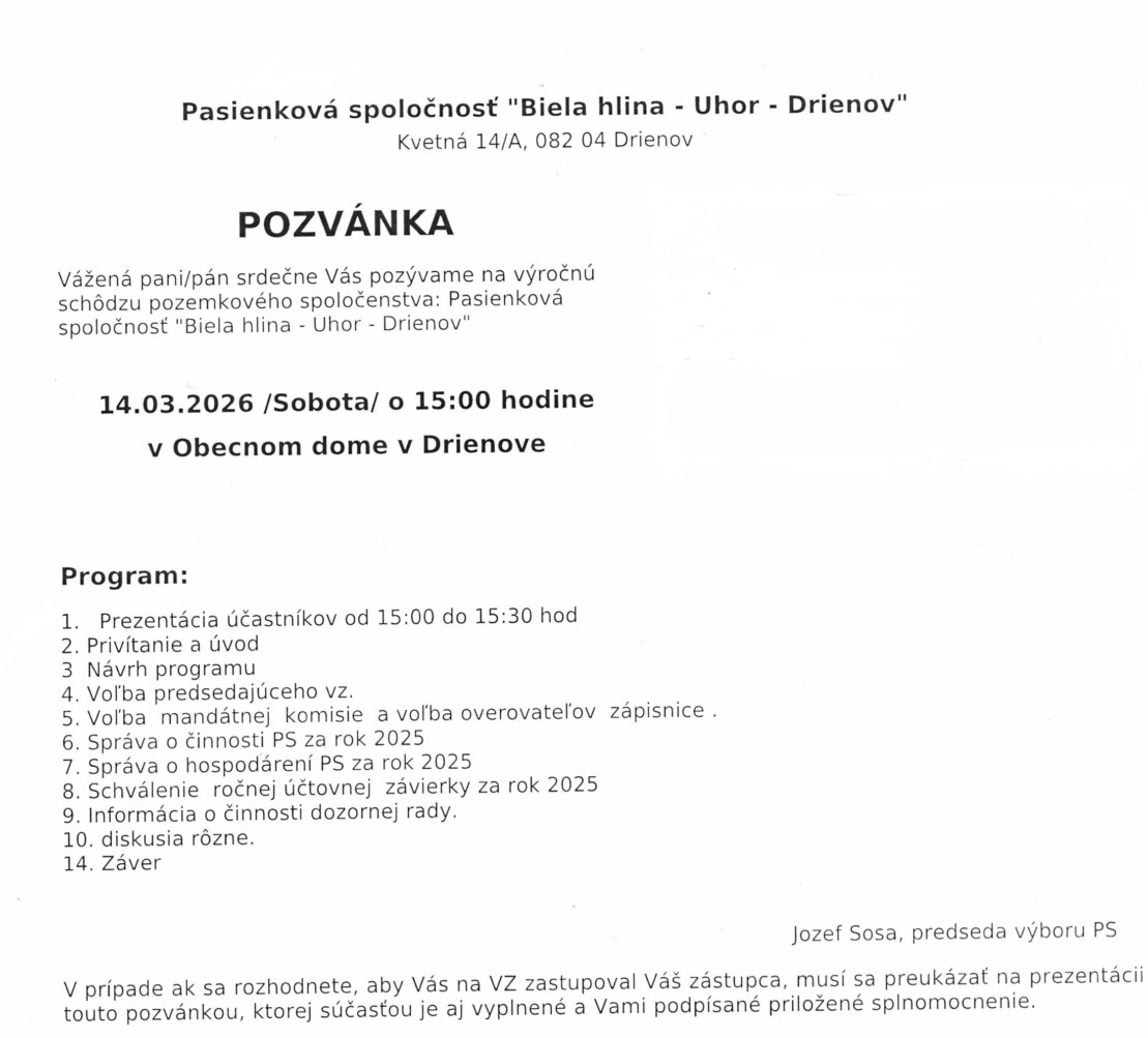 Spoločnosť Pozemkové spoločenstvo "Biela hlina - Úhor" Drienov.